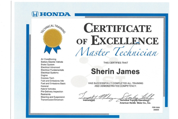 Sherin James brings a wealth of automotive expertise, with a career spanning since 2010. Holding an associate degree in automotive, he has dedicated over 5 years of her professional journey to the Honda brand, where he gained experience as a Honda master tech. Proud of his Indian heritage, Sherin is multilingual, fluent in English, Hindi, and Malayalam.